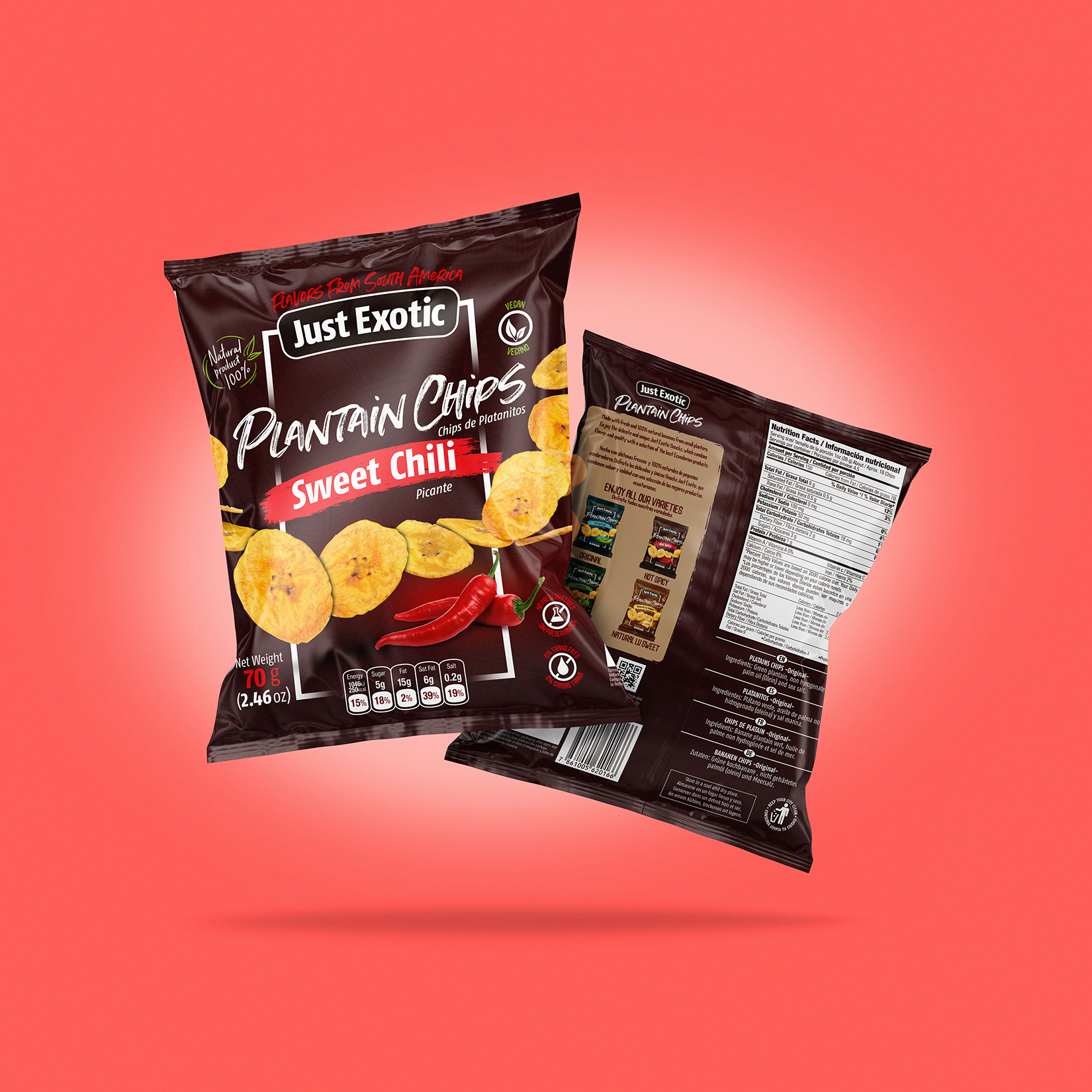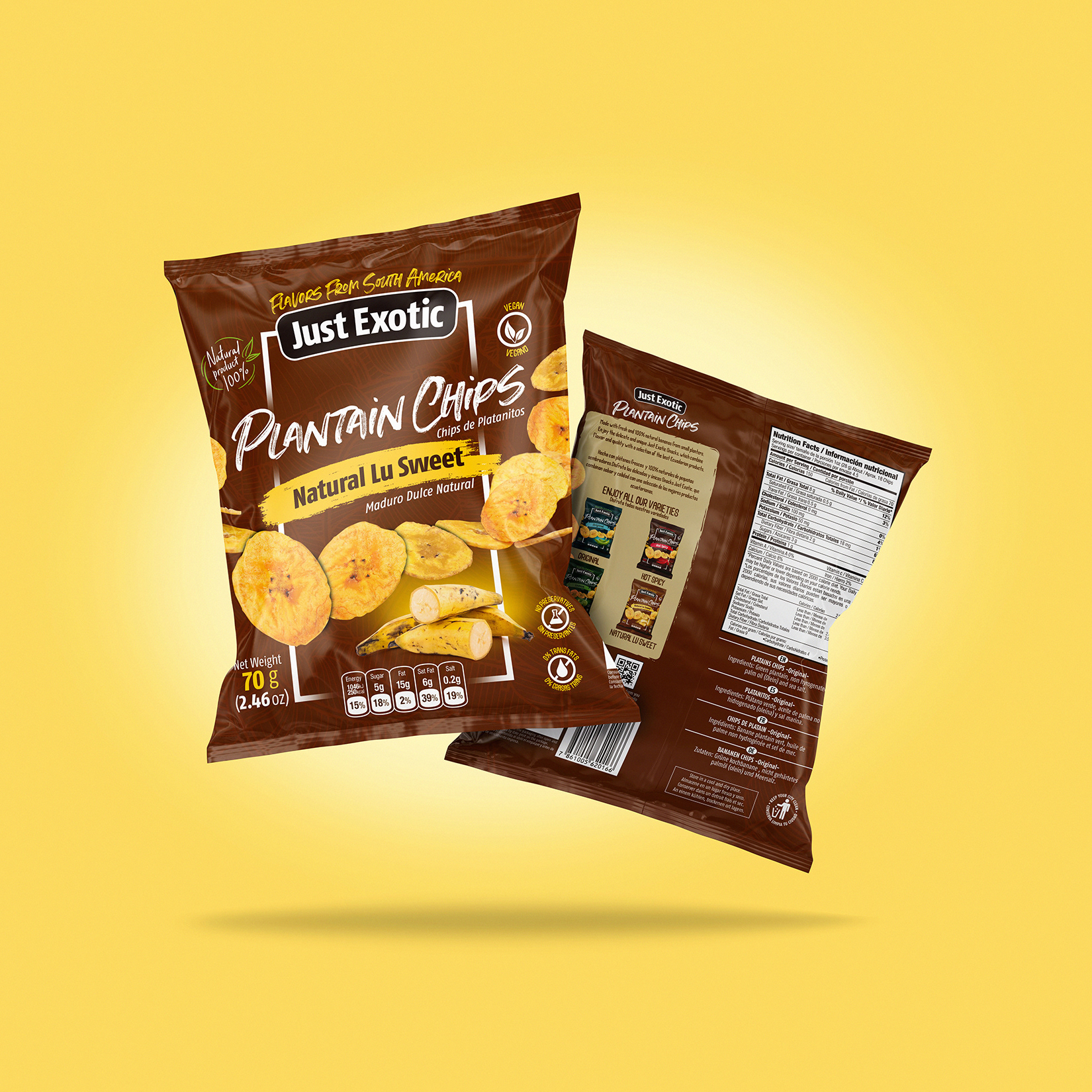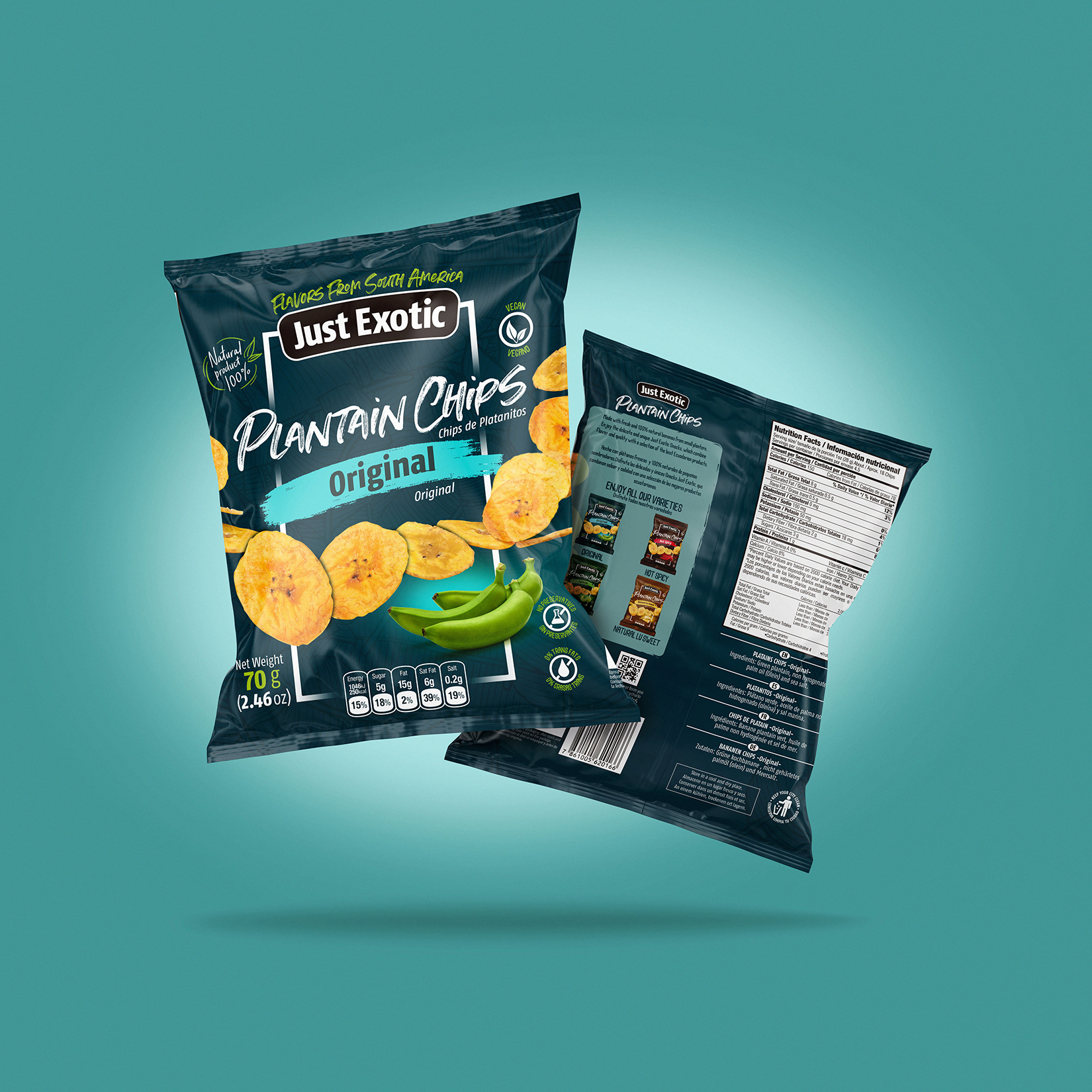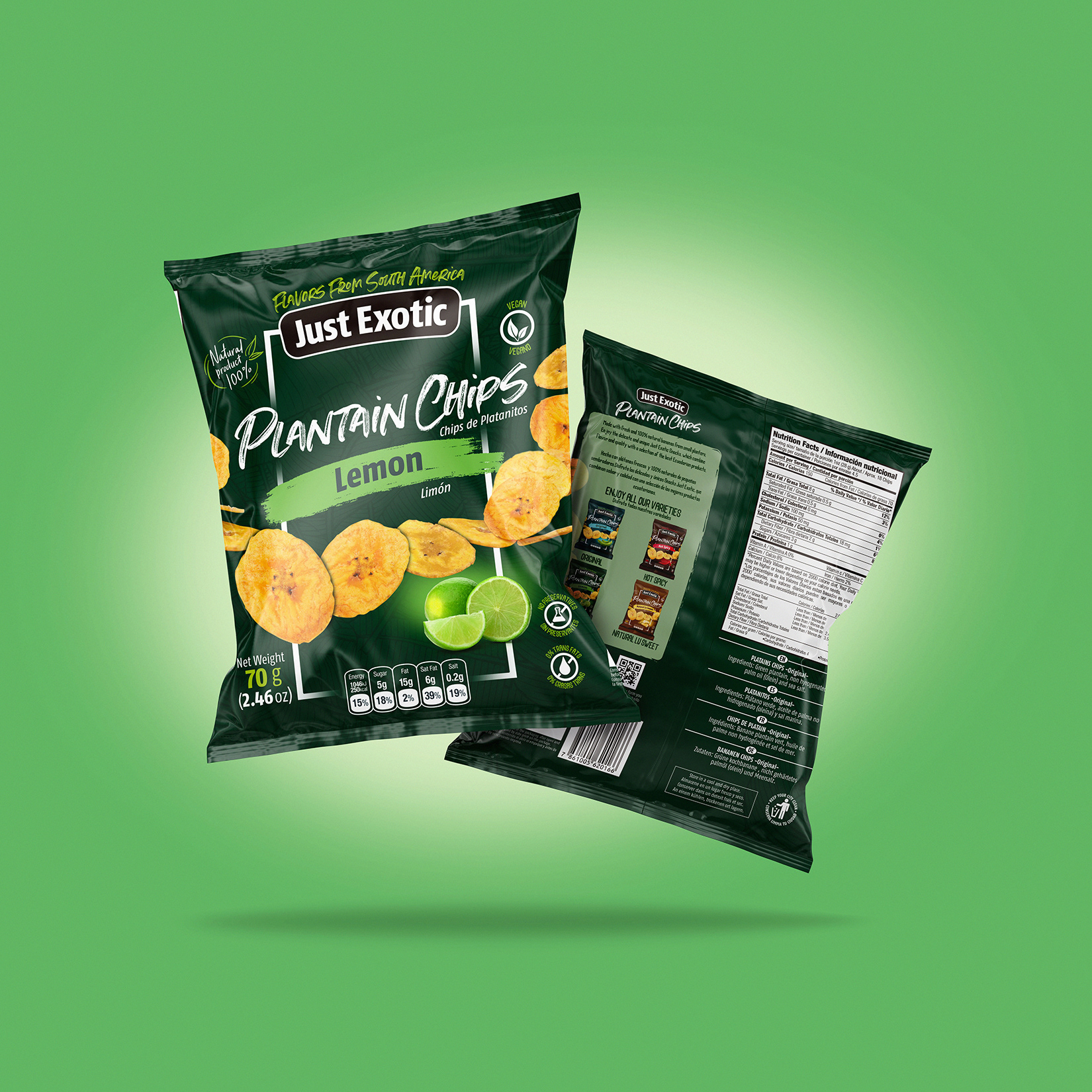 Diseño de empaques para snacks naturales.